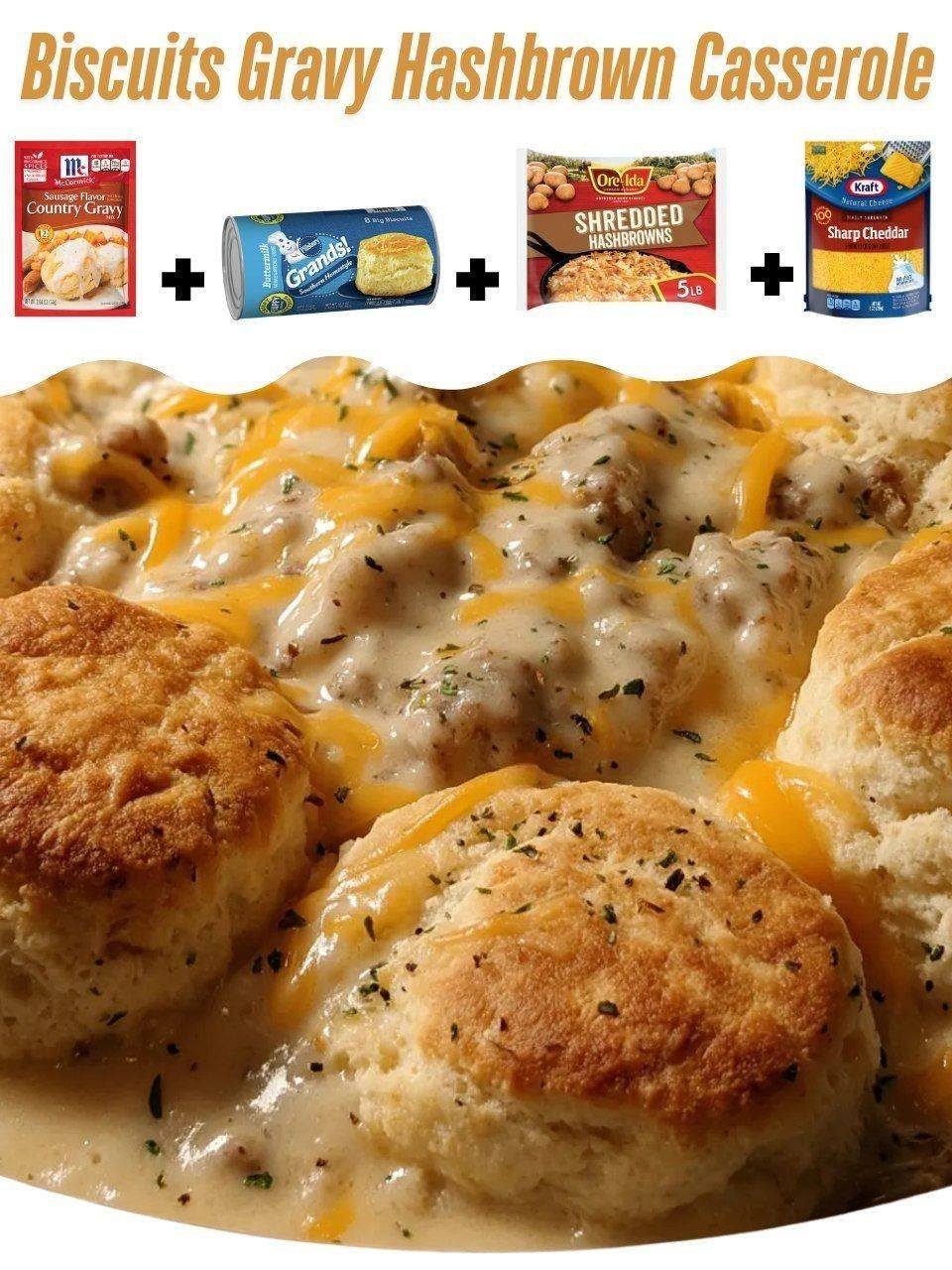 This Biscuits and Gravy Hashbrown Bake is the definition of layered comfort — crispy hashbrowns, savory sausage, fluffy biscuits, melted cheese, and rich, creamy gravy baked together into one hearty dish. It’s cozy, crowd-pleasing, and ready in under an hour, making it perfect for weekend brunches, potlucks, or an indulgent breakfast-for-dinner night.