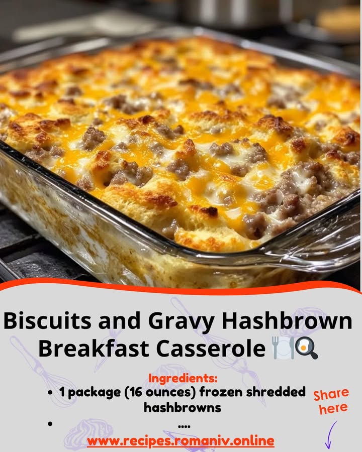 This Biscuits and Gravy Hashbrown Breakfast Casserole is a hearty, make-ahead-friendly dish perfect for mornings when you need something comforting and filling. With layers of fluffy biscuits, savory sausage, crispy hashbrowns, melty cheddar cheese, and a rich egg mixture, this casserole is ideal for brunches, holiday mornings, or weekend meal prep. Easy to assemble and big on flavor, it’s the ultimate crowd-pleasing breakfast bake!