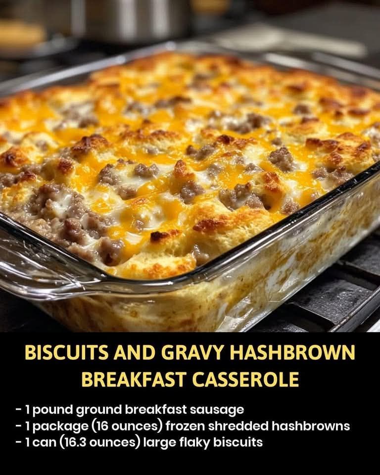 This Biscuits and Gravy Hashbrown Breakfast Casserole is the ultimate all-in-one morning comfort dish. Hearty layers of flaky biscuits, savory sausage, crispy hashbrowns, and melty cheddar cheese are baked together with seasoned eggs for a filling, crowd-pleasing breakfast or brunch. Perfect for holidays, weekends, or whenever you need a warm, satisfying start to your day!