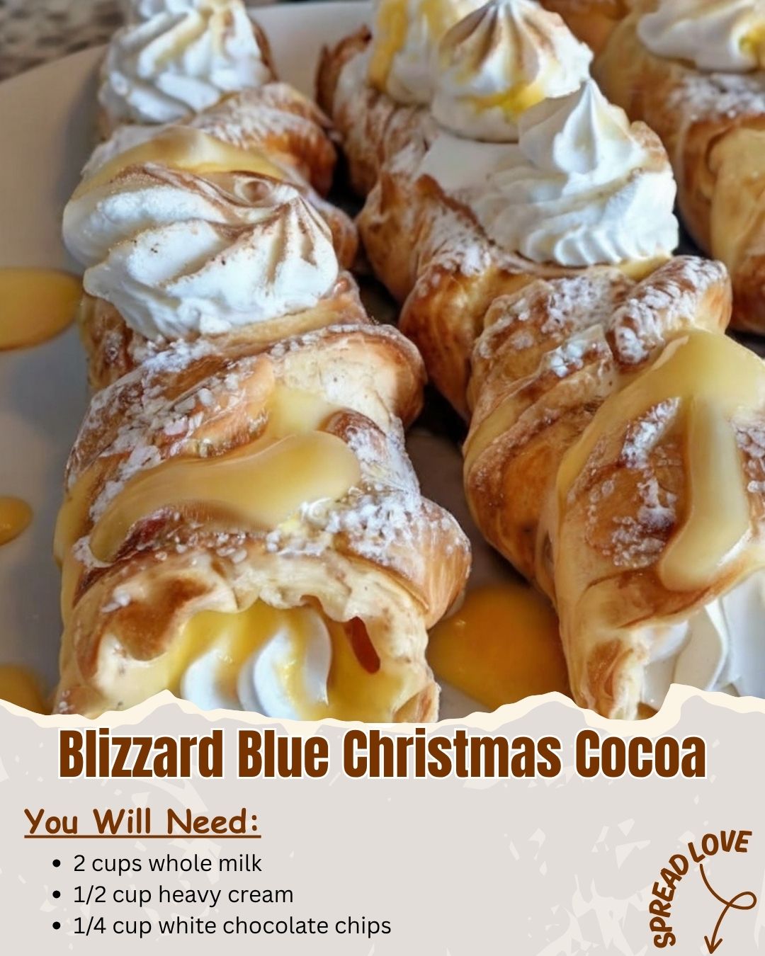Blizzard Blue Christmas Cocoa is a smooth, fruity, and visually striking twist on classic hot chocolate. Designed to evoke the icy tones and crisp sweetness of winter, this drink blends creamy white chocolate with blueberry notes and a cool blue hue. The result is a warm, comforting beverage that feels whimsical and festive, especially when topped with whipped cream and shimmering silver accents.