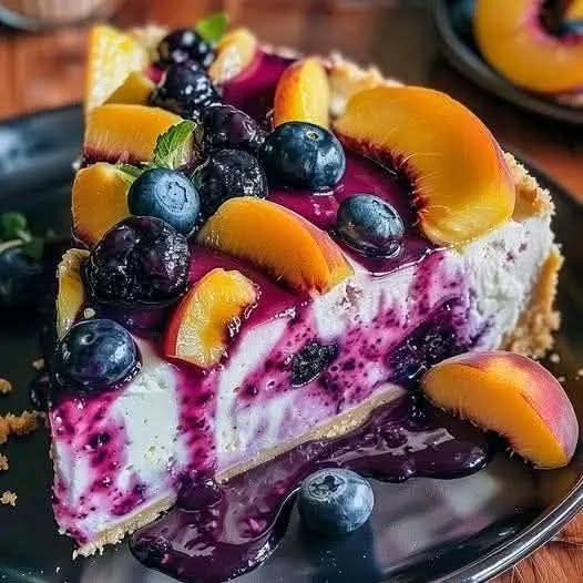 🍑 Blueberry Peach Cheesecake with Graham Cracker Crust