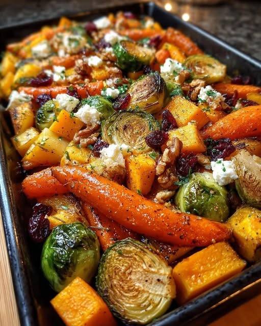 🍠🥦 Caramelized Roasted Vegetables with Feta, Walnuts & Cranberry-Honey Glaze
