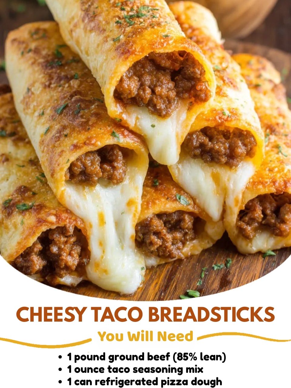 These Cheesy Taco Breadsticks are the ultimate fusion of two comfort-food favorites — tacos and cheesy bread! With seasoned ground beef, melted cheese, and golden pizza dough, they make an irresistible appetizer or fun dinner that’s ready in about 30 minutes. Perfect for parties, game days, or satisfying weeknight cravings.