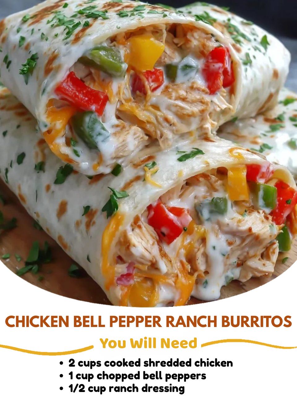 These Chicken Bell Pepper Ranch Burritos are bursting with flavor — combining tender shredded chicken, colorful bell peppers, creamy ranch dressing, and melted cheddar cheese, all wrapped in a warm flour tortilla. Perfect for lunch, dinner, or meal prep, they offer a delicious mix of creamy, cheesy, and slightly tangy goodness in every bite.