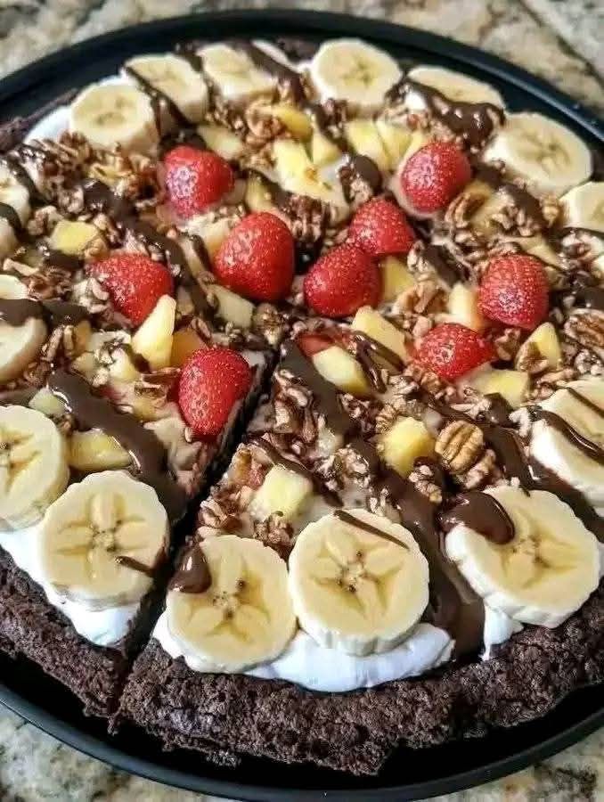 This Classic Banana Split-Brownie Pizza combines two iconic desserts — the rich, fudgy goodness of brownies and the fruity, creamy delight of a banana split! It’s colorful, indulgent, and incredibly easy to make — perfect for parties, birthdays, or any time you’re craving a fun and decadent treat. 🍒✨