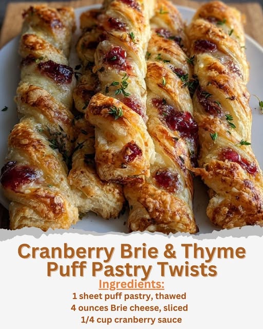 These Cranberry Brie & Thyme Puff Pastry Twists are a deliciously indulgent appetizer that combines the creamy richness of Brie cheese with the tart sweetness of cranberry sauce, all wrapped in a light, flaky puff pastry. The fresh thyme adds an aromatic, herby note that complements the creamy Brie and tangy cranberries, making each twist a perfect bite-sized treat. These savory-sweet pastry twists are ideal for holiday gatherings, parties, or any special occasion where you want to impress your guests with minimal effort and maximum flavor.