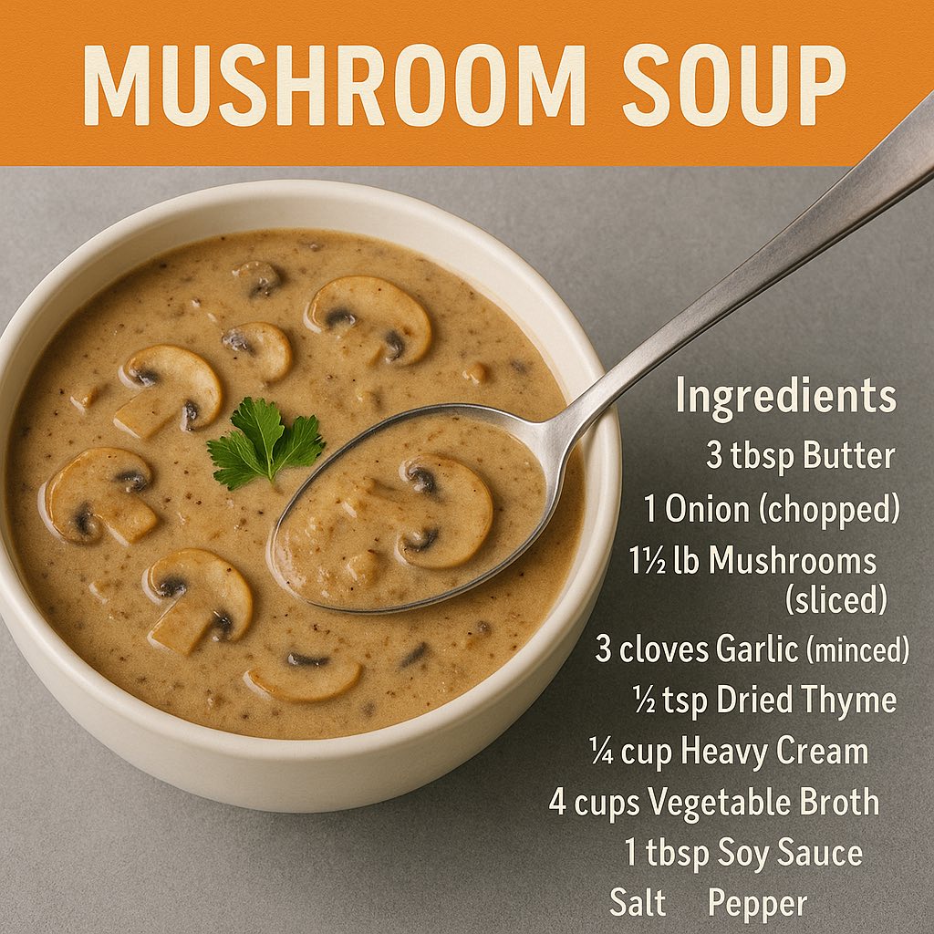 This hearty, flavorful Creamy Mushroom Soup is the perfect comfort food for chilly days. Made with sautéed mushrooms, onions, and garlic, simmered in a savory broth and finished with a splash of cream, it’s simple yet satisfying. Serve it hot with crusty bread or a grilled cheese sandwich for a soul-warming meal!