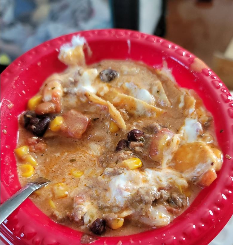 This Creamy Taco Soup is hearty, flavorful, and full of zesty Tex-Mex comfort. With seasoned hamburger meat, beans, corn, Rotel, and a creamy finish from melted cream cheese, it’s the kind of cozy meal that wins over everyone at the table. Perfect for busy weeknights or family gatherings, this soup comes together in one pot and tastes even better with cornbread, shredded cheese, and a dollop of sour cream. 🌮🥣🧀