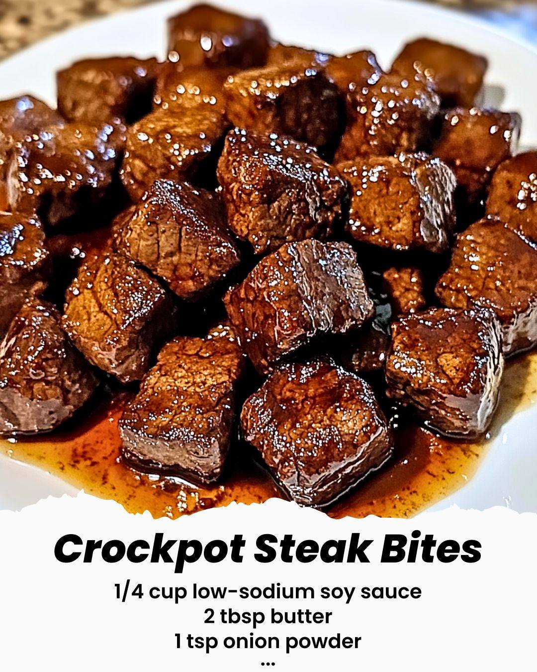 These Crockpot Steak Bites are a hands-off, melt-in-your-mouth way to enjoy beef. With a simple, savory marinade and buttery richness, they’re the perfect weeknight dinner or crowd-pleasing appetizer. Just toss everything into your slow cooker and let the magic happen!