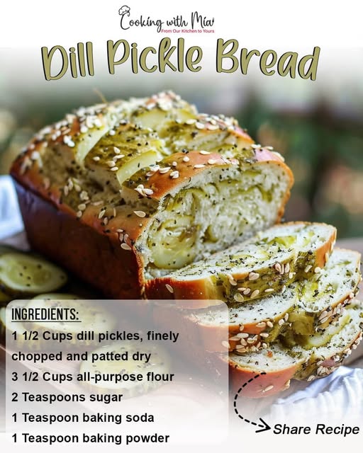 Dill Pickle Bread is a savory quick bread with bold flavor and a soft, tender crumb. Finely chopped pickles, tangy pickle juice, and optional fresh dill add character and balance, while buttermilk keeps it moist. It’s an unexpected crowd-pleaser—especially alongside soups, sandwiches, or a smear of cream cheese!