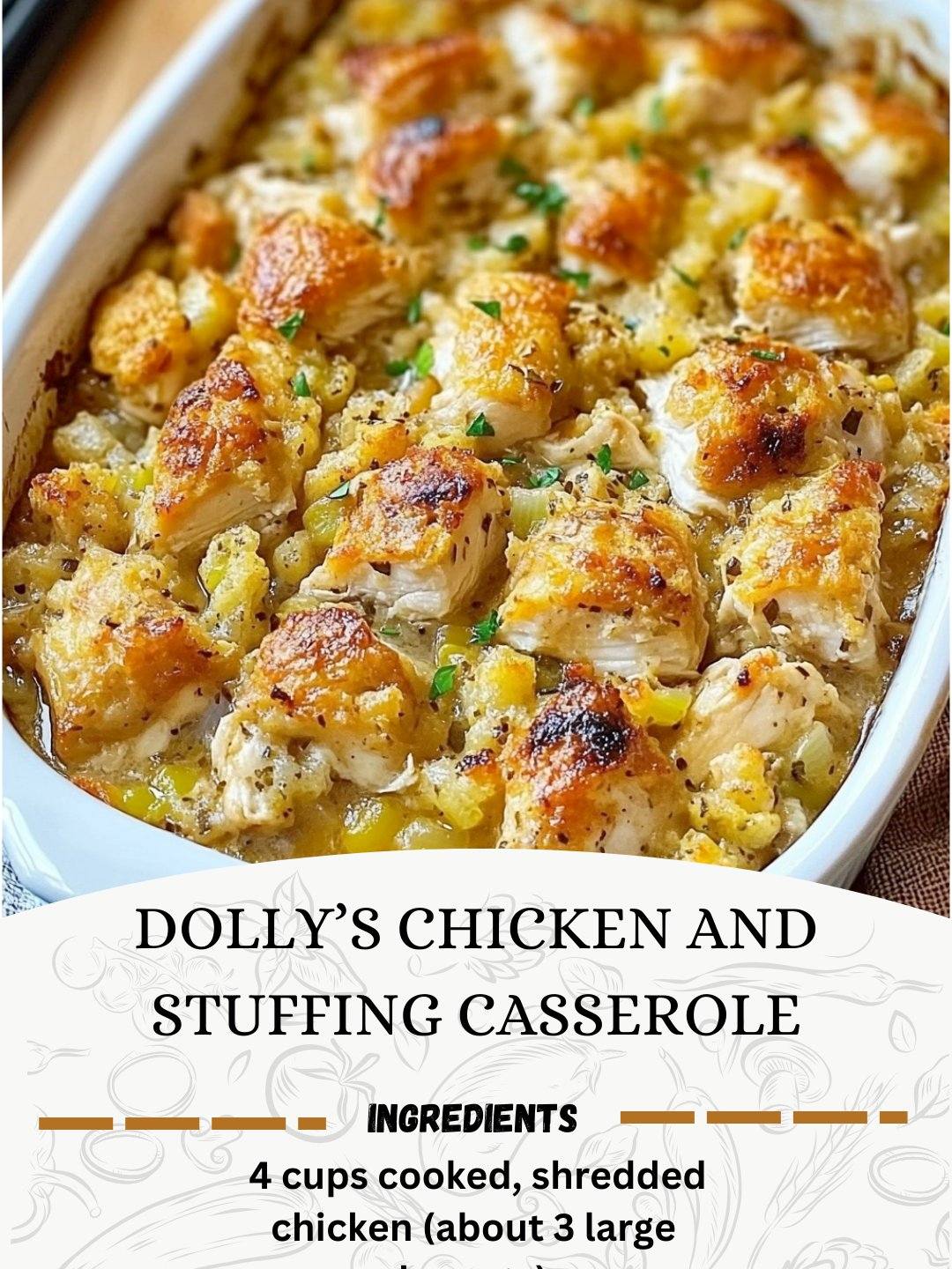 This comforting, crowd-pleasing casserole brings together tender shredded chicken, creamy soup, savory stuffing, and just the right hint of herbs. A true Southern-inspired classic, it’s perfect for busy weeknights, potlucks, or cozy Sunday dinners with the family.
