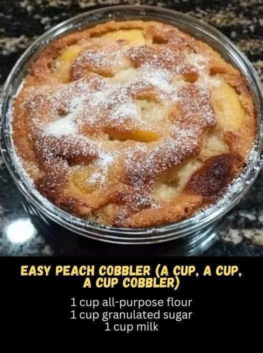 This may not look fancy, but trust me — it’s absolutely delicious and unbelievably simple! My mom always said, “A cup, a cup, a cup,” meaning one cup of sugar, one cup of flour, and one cup of milk — that’s all you need for the easiest, most comforting cobbler ever. Add your favorite fruit (I used peaches), top with a little cinnamon and sugar, and you’ve got a dessert that’s pure nostalgia in a dish!