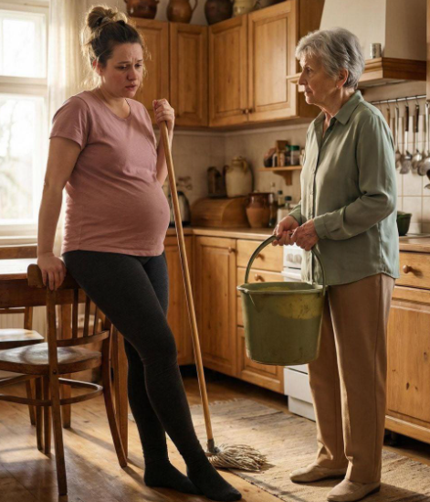 Eight months pregnant, I was cleaning when I brushed past my mother-in-law. She cursed me, slapped me, and dumped filthy mop water. I slipped, fell, my water broke—the instant I knew everything would change.