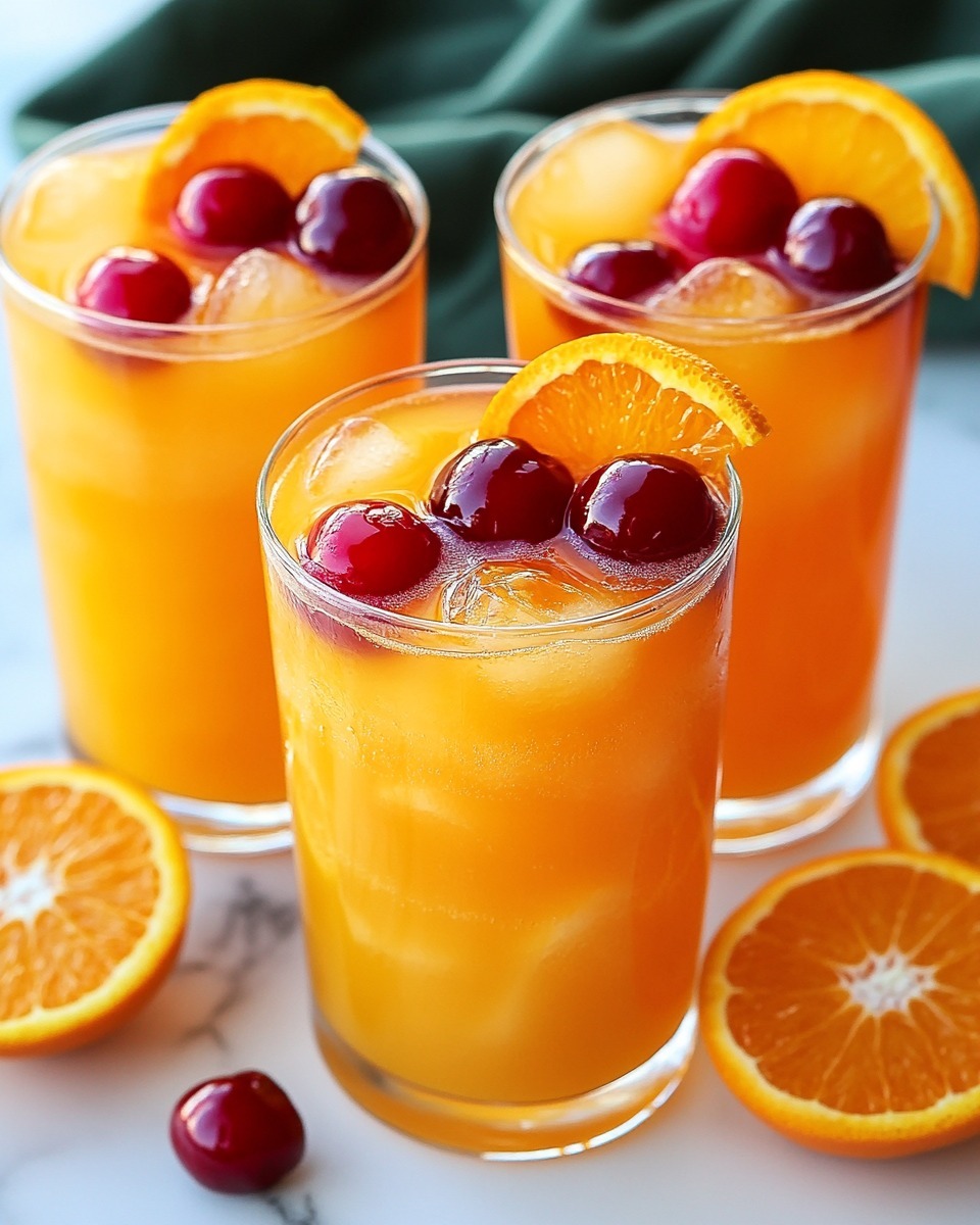 This bright and cheerful punch is a simple yet uplifting blend of fruity flavours perfect for holiday mornings. With its mix of cranberry cocktail juice, pineapple juice, and orange juice, the drink strikes a balance between tartness and natural sweetness, while ginger ale adds refreshing sparkle just before serving. Fresh orange slices and cranberries offer a festive look that fits effortlessly into any holiday celebration. This punch is easy to prepare in advance, making it ideal for busy mornings when friends and family gather around the table.