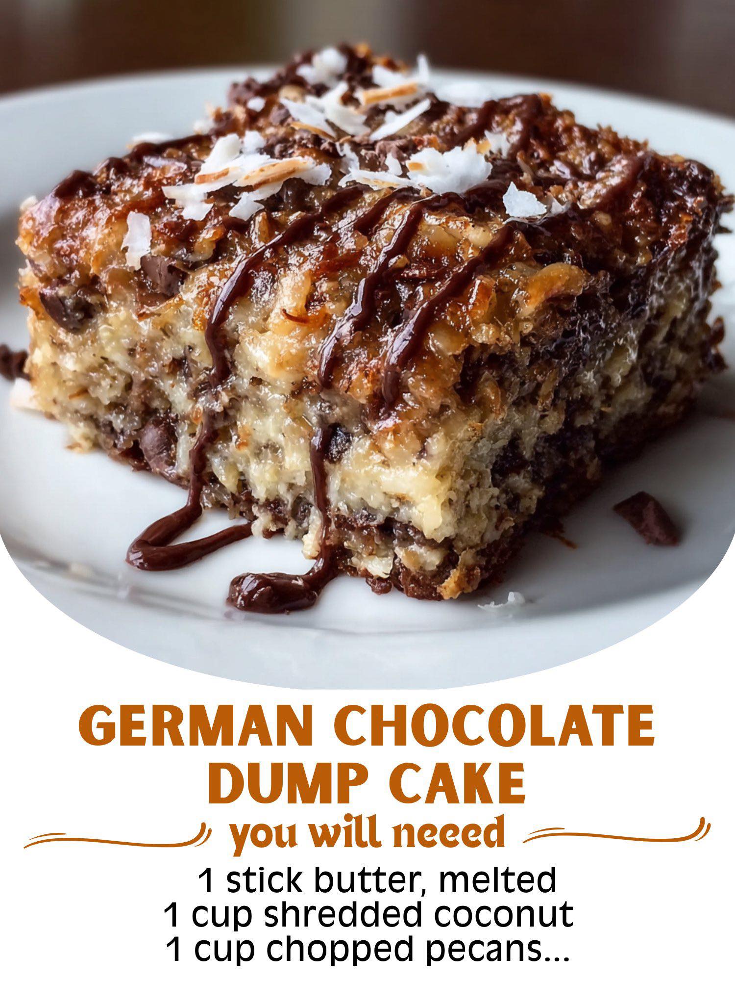 This German Chocolate Dump Cake is the ultimate no-fuss dessert! With layers of coconut, pecans, gooey chocolate fudge, and rich cake mix, all topped off with butter and baked to perfection, it’s sweet, nutty, and oh-so comforting. Serve warm with a scoop of ice cream or a dollop of whipped cream for the ultimate indulgence!