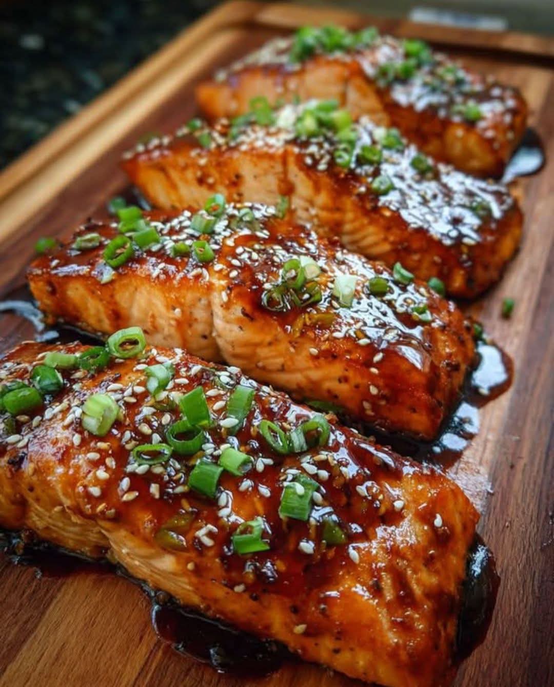 🌿 Glazed Teriyaki Salmon with Garlic & Ginger 🐟