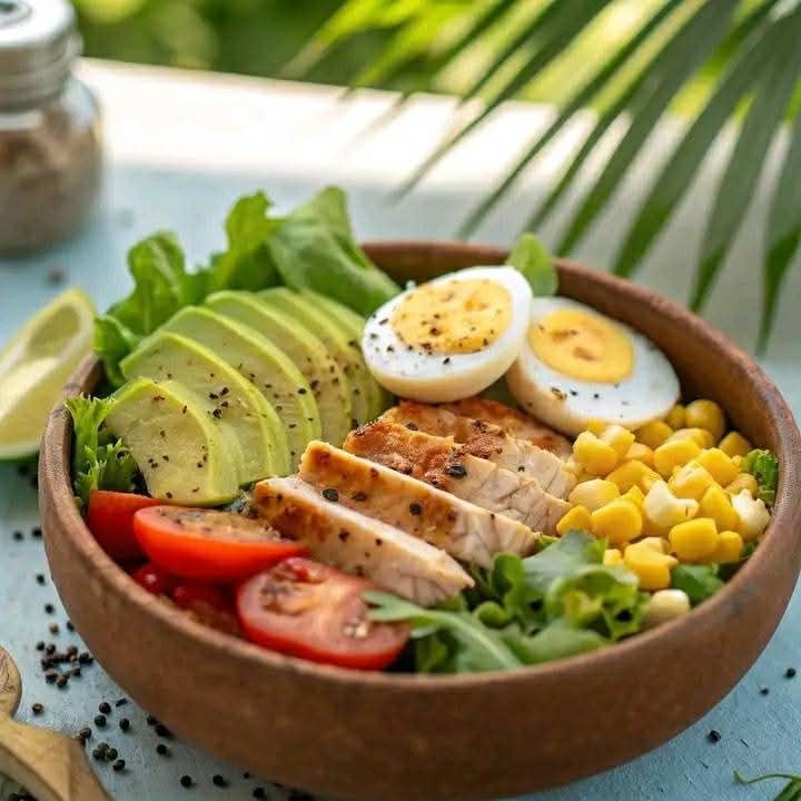 This Grilled Chicken & Avocado Power Bowl is a nutritious, colorful meal that comes together in under 30 minutes. With lean grilled chicken, creamy avocado, sweet corn, juicy tomatoes, and a perfectly boiled egg over a bed of greens, it’s finished with a drizzle of olive oil and zesty lime — a satisfying and refreshing lunch or dinner option.