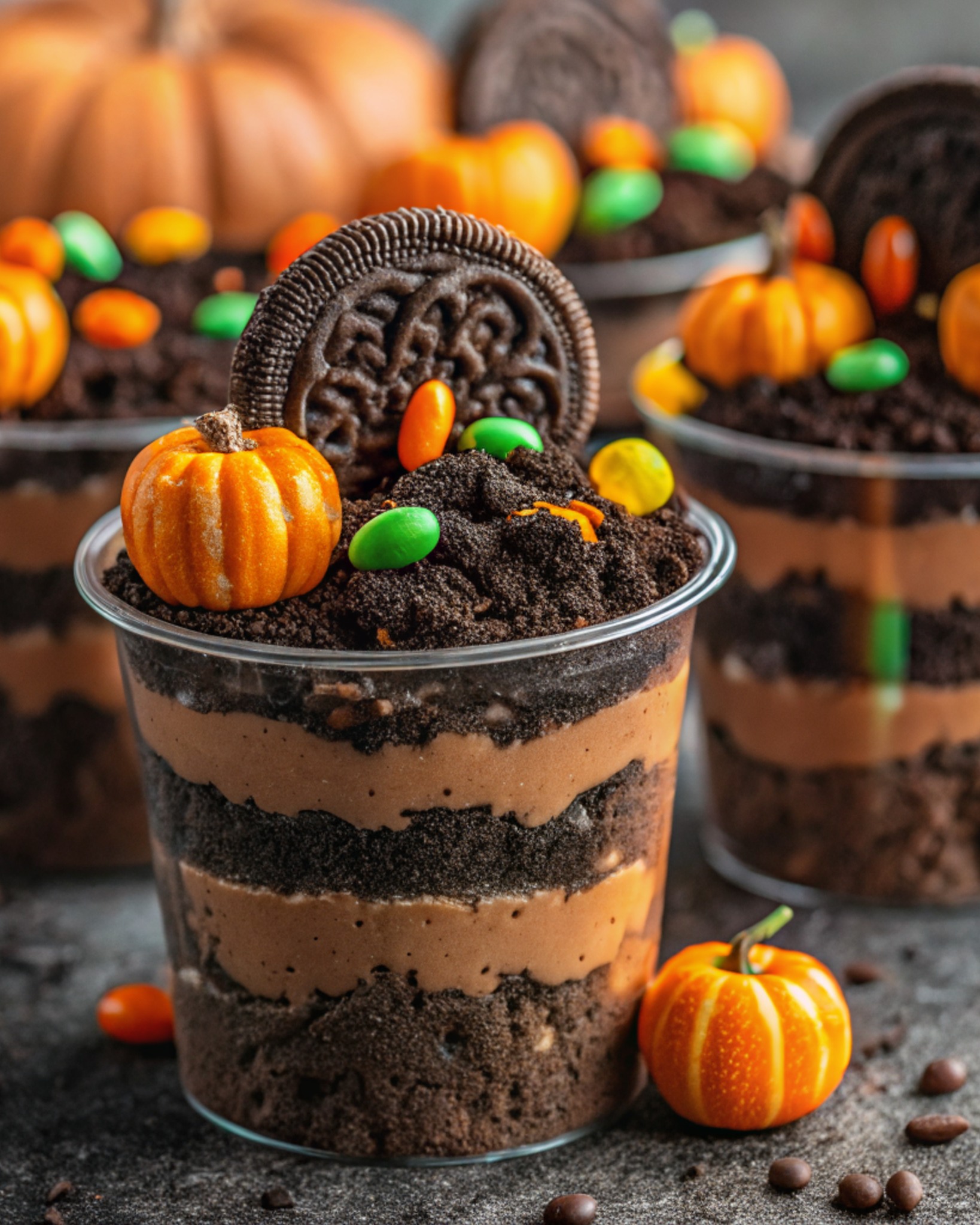 These Halloween Graveyard Dirt Cups are spooky, sweet, and ridiculously fun! A no-bake layered treat made with chocolate pudding, crushed cookies, and Halloween candy decorations. Perfect for parties, kids’ crafts, or just celebrating October vibes!