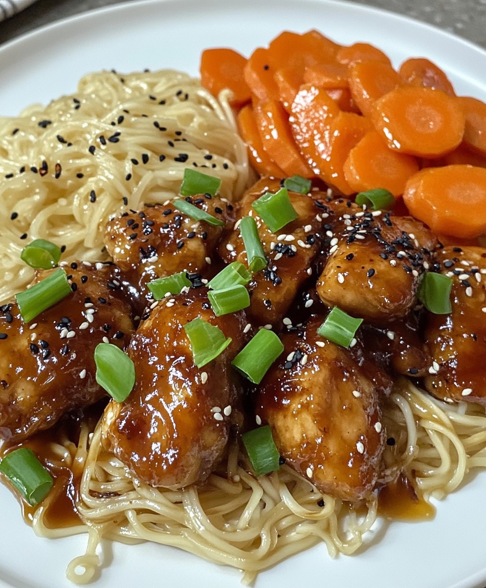 🍯🍜 Honey-Garlic Chicken with Butter Noodles & Pepper Carrots