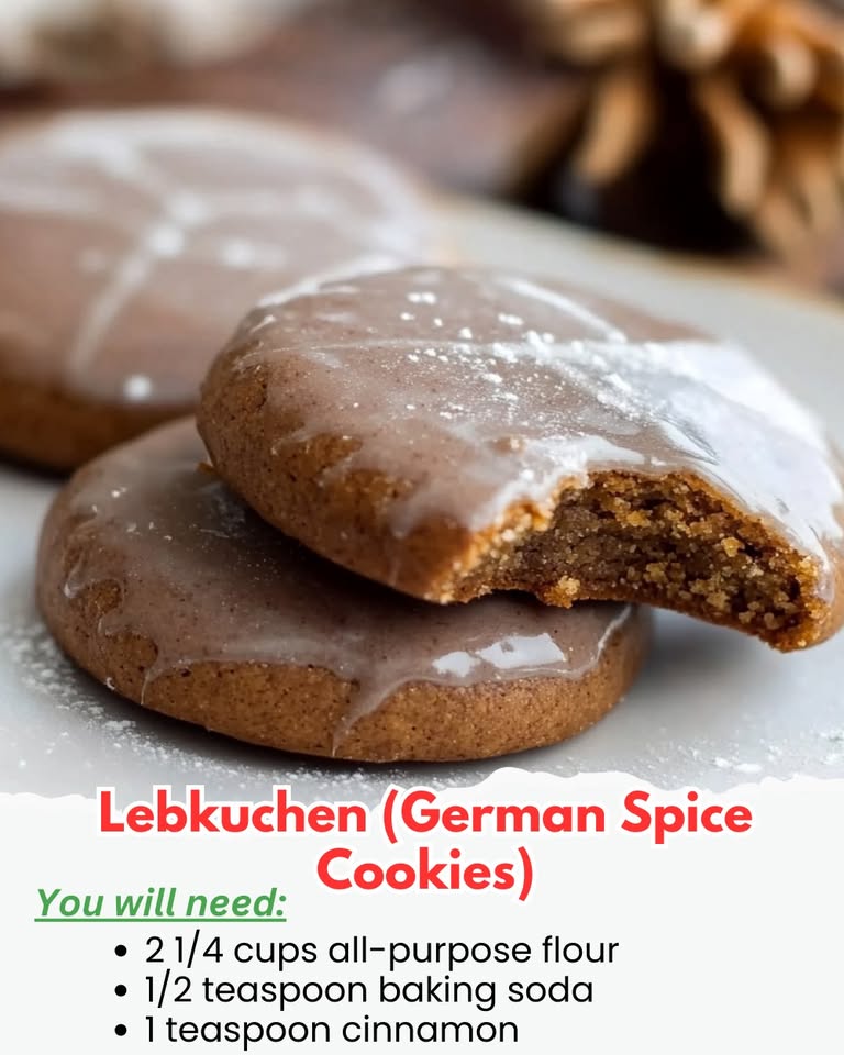 These classic Lebkuchen cookies are a beloved German holiday treat, filled with warm spices, sweet honey, and bits of nuts and candied fruit. Soft, aromatic, and finished with a delicate sugar glaze, they’re the perfect cookie to enjoy with a hot cup of tea or coffee. Whether baked for Christmas or simply to bring a bit of European charm to your kitchen, these cookies fill your home with the comforting scent of spices and honey.
