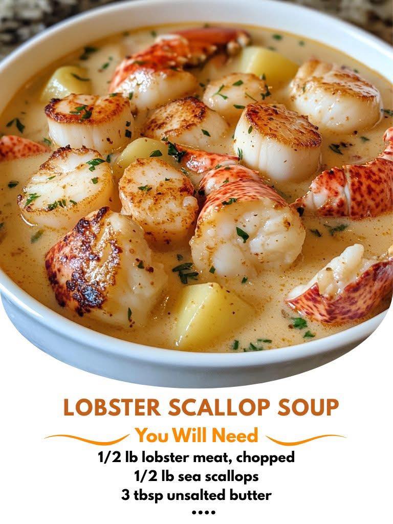 Lobster Scallop Chowder π¦π₯£ is the ultimate luxurious comfort food β perfect for cozy nights or special occasions. Sweet chunks of lobster and tender sea scallops are gently simmered in a rich, buttery base infused with garlic and cream. This elegant chowder is warm, silky, and deeply satisfying β a restaurant-quality dish you can make at home with ease.