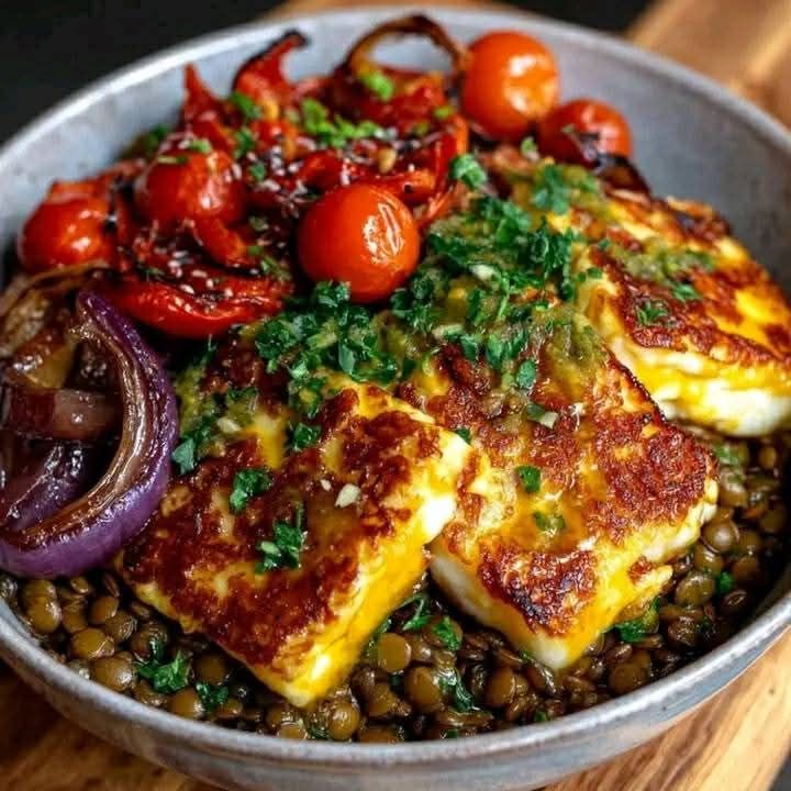 This Mediterranean Lentil & Halloumi Warm Salad brings together tender lentils, golden fried halloumi, and vibrant vegetables for a dish that is hearty, balanced, and full of fresh, bright flavors. Warm components mingle with crisp greens, while herbs and lemon juice create a refreshing finish. The combination of textures—from creamy halloumi to soft lentils and lightly sautéed vegetables—makes this salad satisfying enough for a full meal while still feeling light and nourishing.
