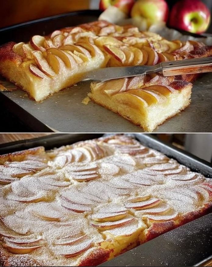 This simple and tender apple sheet cake is bursting with juicy apple slices and a buttery, moist crumb. Perfect for everyday baking, potlucks, or a cozy afternoon treat, it’s lightly sweet, easy to prepare, and topped with a gentle dusting of powdered sugar. A classic that never goes out of style!