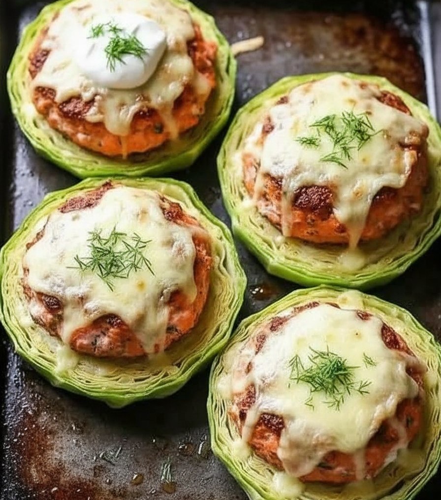 A healthy and unique take on salmon served on roasted cabbage buns — packed with flavor and perfect for a low-carb meal!