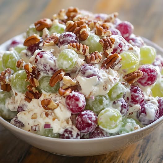 đ Creamy Grape Salad đ This creamy grape salad is a refreshing blend of sweet, juicy grapes coated in a smooth and luscious cream cheese mixture. Topped with a brown sugar and pecan crunch, itâs the perfect balance of creamy, sweet, and slightly nutty â a crowd-pleasing side dish for any gathering. Whether served at … Lire plus