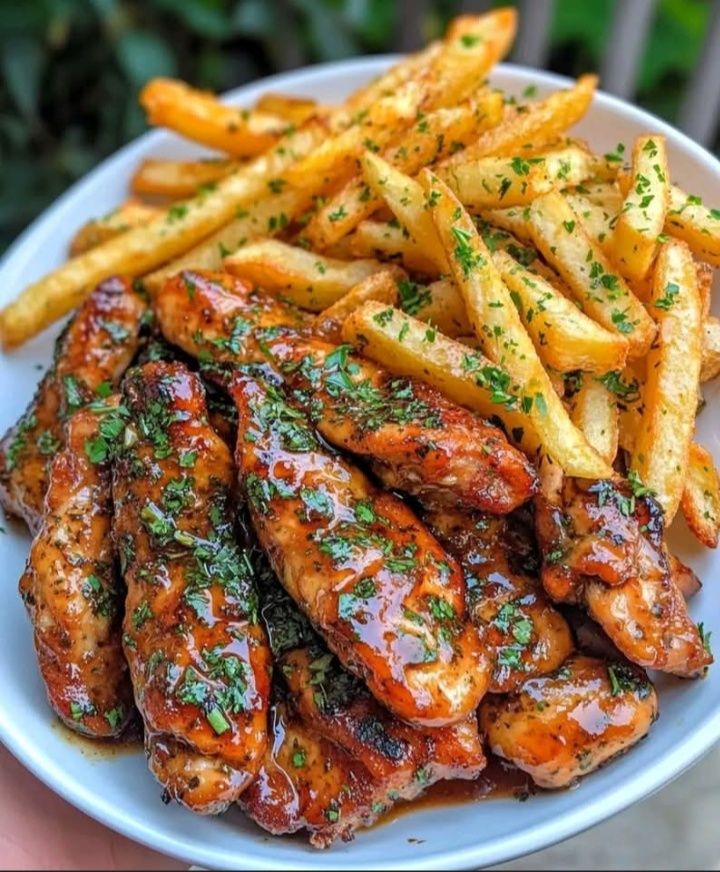 π Sticky Herb-Glazed Chicken & Crispy Fries πβ¨