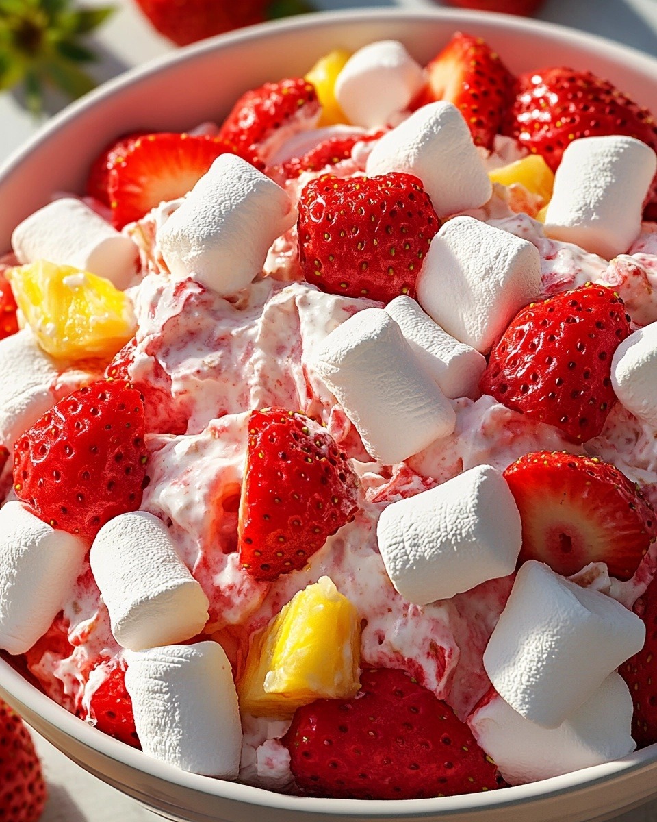 Strawberry Fluff Salad with Marshmallows and Fruit