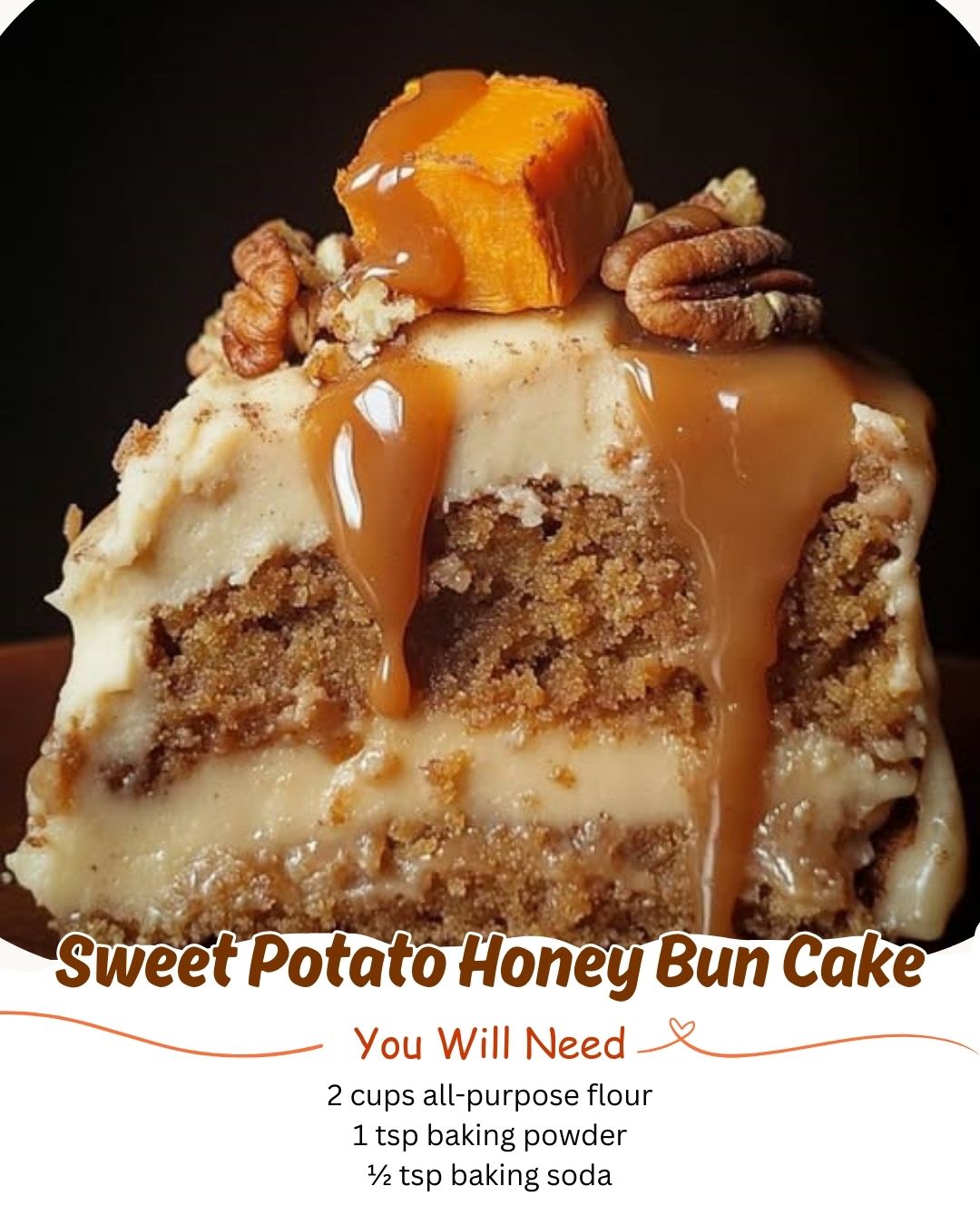 This Sweet Potato Honey Bun Cake is a warm, spiced dessert that blends the cozy flavors of fall with the nostalgic swirl of a honey bun. Topped with a luscious cinnamon cream cheese icing, chopped pecans, and a dreamy caramel drizzle, it’s the perfect dessert for holidays, potlucks, or anytime you want to wow a crowd with minimal fuss.