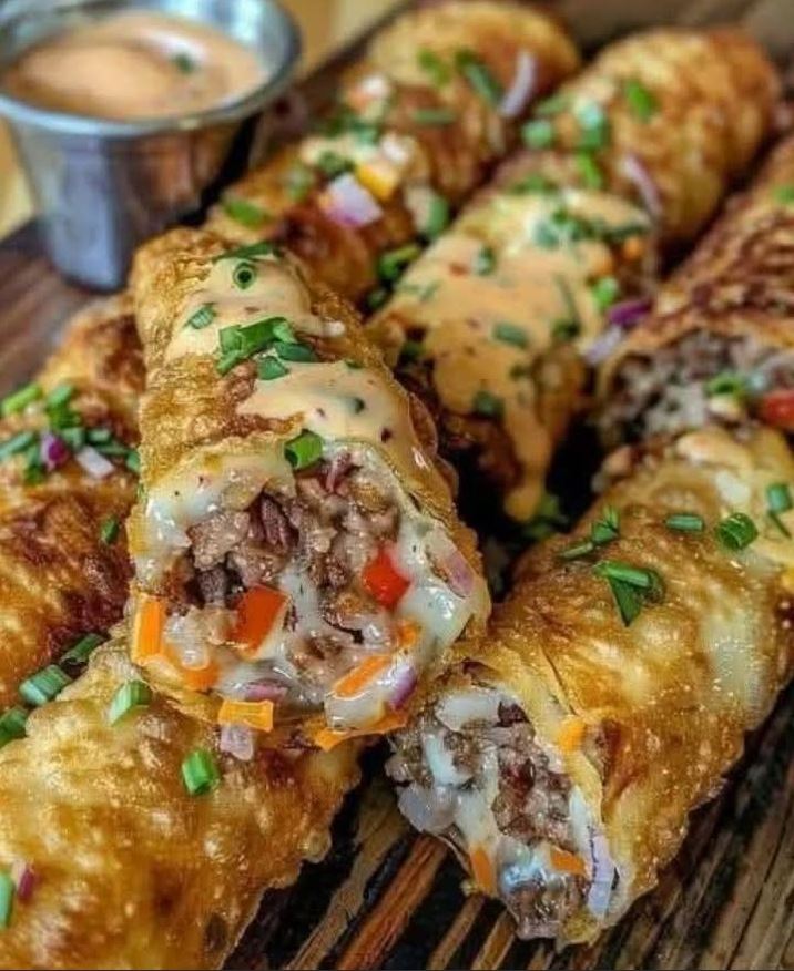 These bold and spicy Voodoo Egg Rolls bring a taste of Cajun fusion straight to your plate. Stuffed with crawfish or shrimp, andouille sausage, rice, and melty cheese, each crispy roll is a flavor-packed bite that’s perfect as an appetizer or game day snack. Serve them with a creamy cheese sauce or spicy ranch to kick things up a notch!