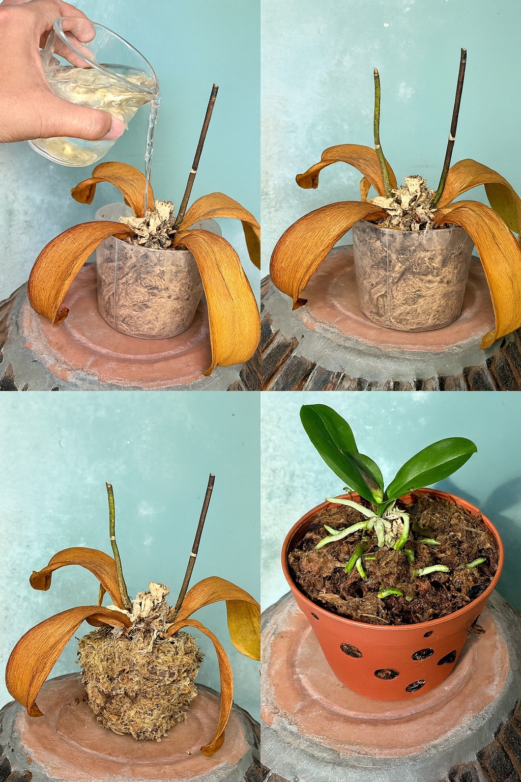 While the garlic water is resting, we will prepare the orchid branches for propagation.